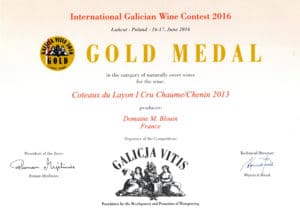 Nous sommes ravis de partager avec vous l’obtention des médailles Gold, Grand Gold et Champion ! Reçues lors du concours Galicja Vitis, en juin dernier, pour le Cotaux du Layon 1er Cru Chaume 2013.